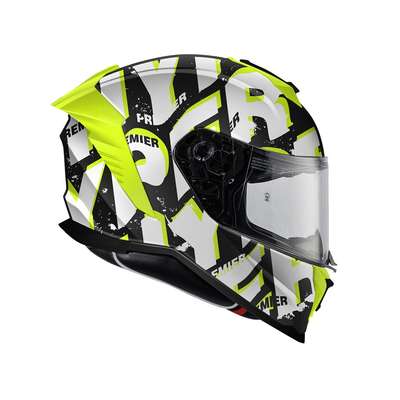 Hyper SR HelmetOuter shell is produced in double measure to ensure better fit. Outer shell construction is made of tricomposite fiber, a mix between dyneema, carbon fiber, aramid fiber and epoxy resin that makes the helmet elastic but resistant in case of impact. Inner shell construction is pressure-plated in EPS with differentiated density. Air vents on top of the shell and on chin ensure air flow while rear extractor ensures circulation of air. Visor block is placed in the center of the chin strap and is easy to operate: a simple click makes the helmet even quieter and safer especially at high speeds. Advanced padding System kit included allows fit customisation and all interiors are breathable, removable, washable and hypoallergenic thanks to the Sanitized treatment. Locking system is double-ring Predisposed to the installation of Bluetooth® communication systems. High-strength clear visor with anti-scratch treatment and designed for insertion of the Pinlock® anti-fog system included. Pinlock® lens is included.