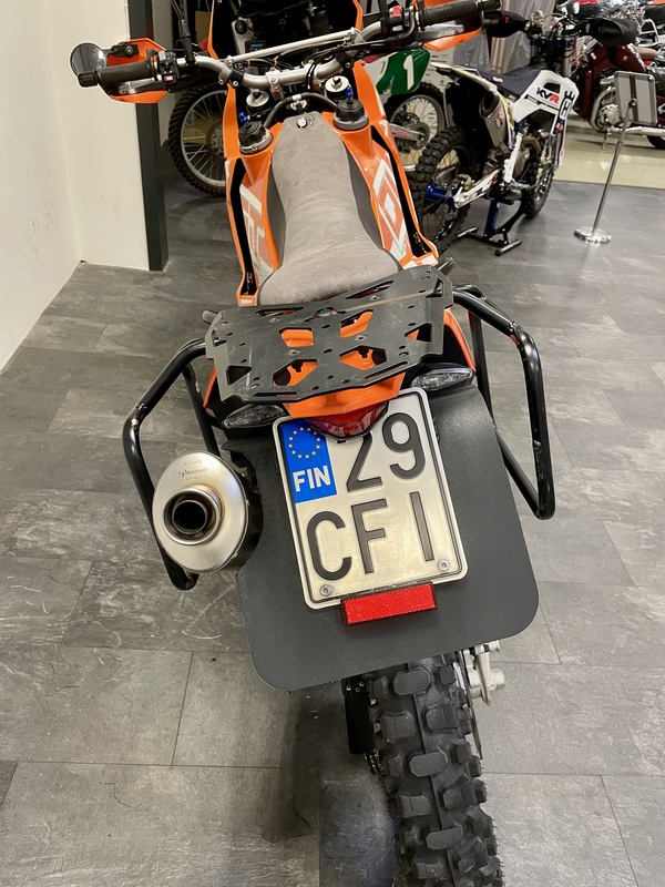 Lisävarusteet: | - Spyball varashälytin + 2 x kaukosäädin, PIN+walk away suojattu - Aavikkofiltteri ilmanpuhdistimen ottosuotimena - Navigointitorni, jossa Hellan projektorivalot, mahdollisuus asentaa oikea roadbook kaukosäätimineen ja trippeineen. - Rally Replica etukate - Kahvalämmittimet - Acerbis etutankit 2 x 9 litraa + polttoainepumppu, joka yhdistää etutankit takatankkiin. - Takatankki 16 litraa, eli yhteensä n. 30-32 litraa maksimitilavuus* - n. 700-800km toimintasäde (ajettu 740km itse täyspakattuna, ei ollut tyhjä) - Selle Dalla Vallen istuin - Ketjurasvari - Jäykemmät etujouset - 2 x virtalähdöt, toisessa nyt volttimittari - Ram-mount kännykkäpidikkeellä navi-tornissa - Laukkuraudat - Enduristan tankkilaukku - Wolfman takalaukut - Tractive 46KT08 takaiskunvaimennin - 300mm joustovaralla fork extension kit keula |