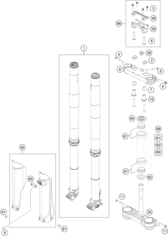 Chassis - FRONT FORK, TRIPLE CLAMP (FX 350 BT 2023)